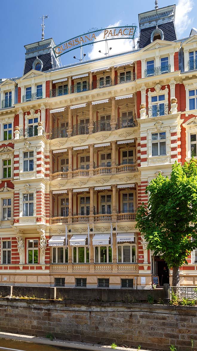 Read more[SPLIT]Read lessStep out of Quisisana Palace and walk through streets lined with tall art nouveau buildings, past elegant colonnades, and enjoy a coffee in a riverside café. Then take to the waters at one of the 12 hot springs, followed by a trip to the Becherovka factory to sample the local herbal liqueur. Take the cable car, or forest path, up to Diana Tower for a magnificent view of the town and the forests beyond.