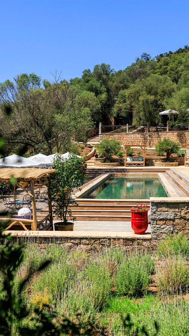 Amid the scent of citrus and gentle rustle of the olive trees lies A Mandria di Murtoli, an enchanting island retreat that delivers Corsican authenticity within a truly luxurious setting. By day, the Mediterranean sunshine warms the cool stone buildings and flashing sapphire pool. At night, starlit skies illuminate the scene, glittering like fireflies and creating a truly romantic atmosphere. Life here is unhurried and intentional – imagine rising for a slow stroll along herb-dotted pathways, reading under the dappled shade of a crocheted sun umbrella and then whiling away long, star-lit evenings by a glowing fire pit.
