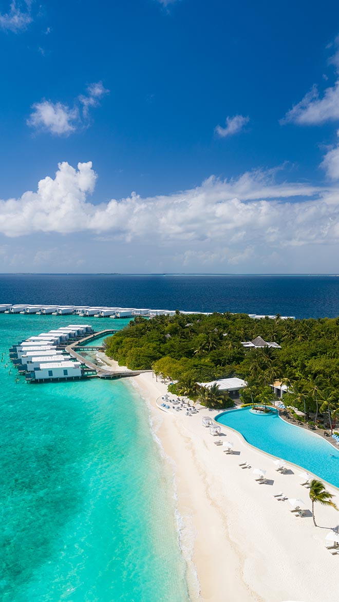 Soothing, airy villas finished with sleek wood and marble each come with their own private pool and blur the boundaries between land, ocean, jungle and sky. Cool off in a wave-skimming hammock alongside your over-water sunset villa, wake to the chirrup of the jungle canopy in a magical treetop suite, or bury your feet in the satin sands of a breezy beach villa. Replenish your energy with the Javvu Spa’s varied menu of natural therapies, or spend the day in the dappled shade of the beach club. Explore the underwater kaleidoscope beyond the shallows or see the once-in-a-lifetime spectacle of manta rays gathering beneath a full moon. After sunset the island comes alive with gastronomic experiences, circus performances and music from around the world.