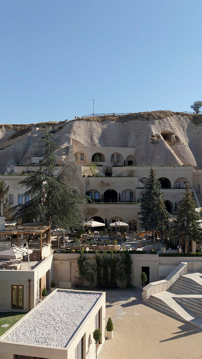 Your first sight of Avantgarde Refined Caves of Cappadocia may just stop you in your tracks. Emerging from among the otherworldly rock formations of Anatolia, this experiential hotel feels both private and palatial. Uncover serene courtyards. Secluded, rooms set within the rockface itself. And warm hospitality that might just have you extending your stay.