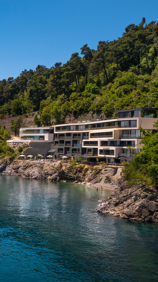 Rise with the sun over Kvarner, its archipelago of jewel-bright islands strung across the sea like the stones of a necklace. Whether you choose a Superior Room or Suite, glass walls open up the views – best enjoyed from your private terrace, as the waves crash rhythmically against the rocks below. For a closer look, take the steps that zigzag down the cliffs to the sun terrace, lined with loungers, or the blissful bay just below.