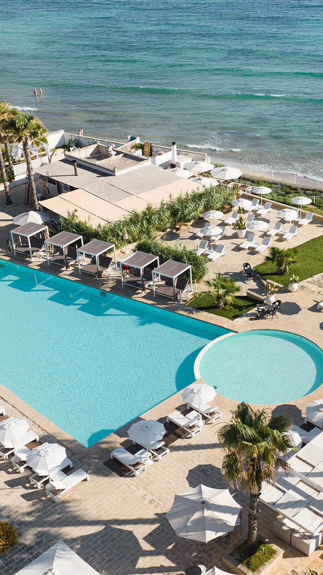 Begin your day with a few laps of the invitingly large swimming pool. Take a dip in the turquoise Adriatic just steps away. Or enjoy some tranquil me-time at the Aqua Spa. You’re also perfectly placed to drive off and explore Puglia’s beautiful towns and landmarks such as Alberobello’s trulli – conical roofed houses worthy of the most stylish hobbit. Then, as another showstopping sunset casts its lilac glow over whitewashed walls, the sizzling aromas of a traditional Apulian dinner entice you to the bougainvillea-draped terrace of the hotel’s restaurant.