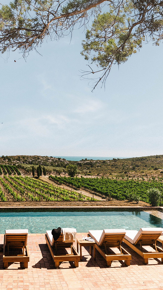 This untamed natural beauty, that shifts with the seasons, translates to the rooms. Warm tones recall sun-baked stone, pops of pale green echo the vineyards, while pure white and cool tones introduce a sense of contemporary luxury to interiors – putting indoors and outside in perfect harmony. And in the Château, rooms are bright and spacious, while suites at Villa Soleilla offer a private pool, terraces and gorgeous views through floor-to-ceiling windows. Whitewashed walls, apple-green shutters and blooming lavender pepper the main hotel – a pleasing jumble of stone buildings, courtyards and verandas, with plenty of shady spots for quiet relaxation. A central pool, tennis courts, putting green and spa provide plenty of entertainment, while tours of the estate and wine tastings are also available for visiting oenophiles.