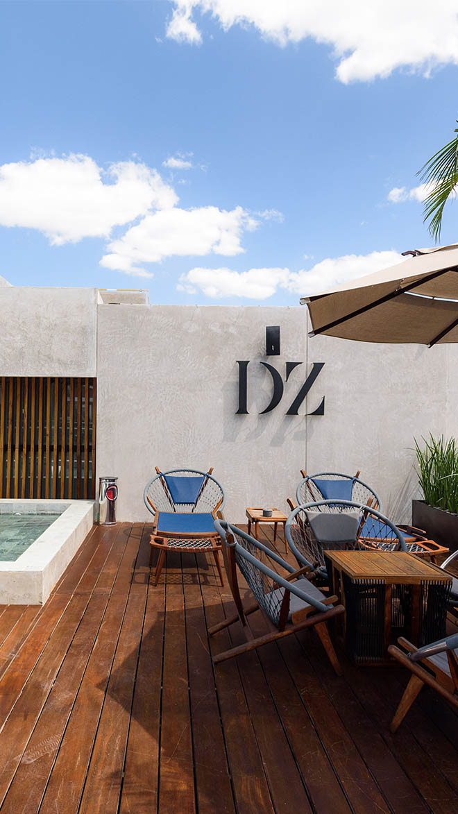 Inside, concrete walls, monochrome floor tiles, leather sofas and sleek wood lend a masculine, contemporary feel to the rooms and communal spaces. Pillow, mattress and aromatherapy menus keep the comfort factor high, with many rooms featuring generous bathtubs and private outdoor spaces. Up on the roof, the invitation-only DZ Bar serves up cocktails and gourmet food snacks to a soundtrack of DJ-led beats – and a backdrop of incredible views. And Fronto, the hotel’s slick restaurant, stirs the senses with dishes made from fresh, Yucatán-inspired ingredients.