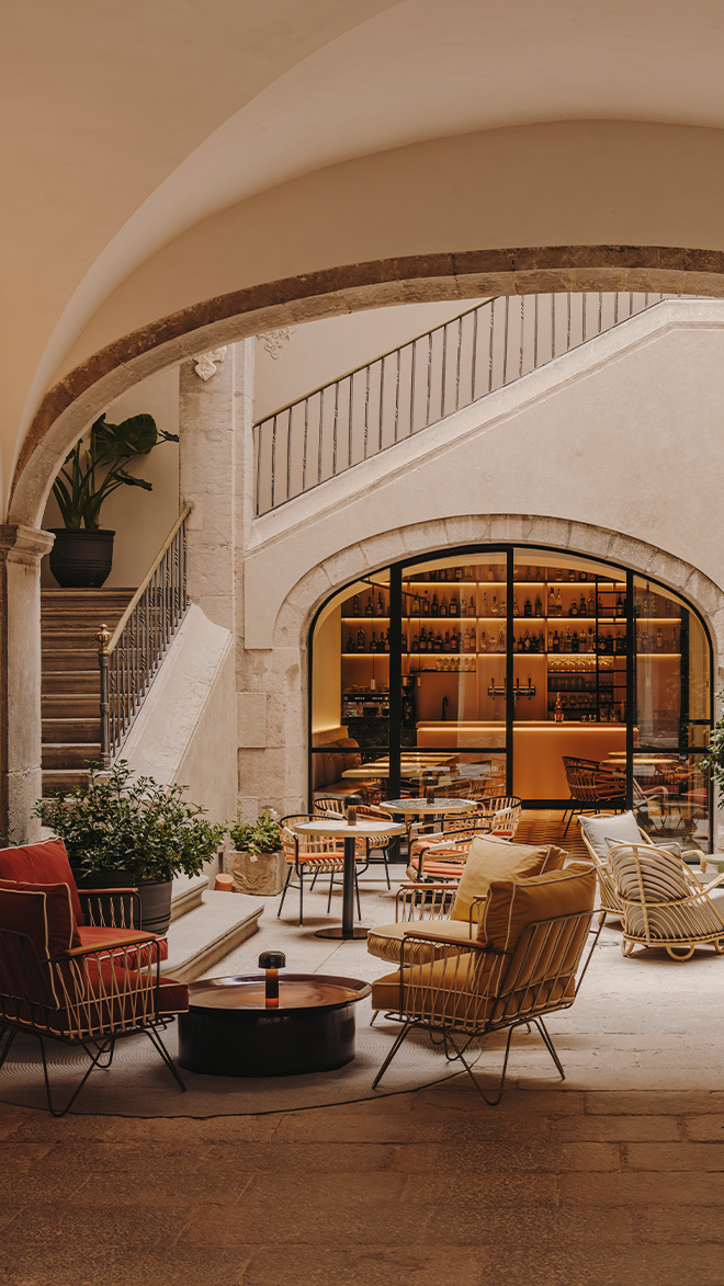 Where beautiful baroque architecture blends with contemporary art to surprise and delight at every turn – welcome to Hotel Palau Fugit. A sensitively restored 18th-century palace in Girona’s lively Old Quarter – transformed into a luxurious boutique retreat. Relax in the dappled green oasis of the Romanesque courtyard garden with its burbling ceramic fountain and jade-water swimming pool. Drift off in the spa built deep inside a rocky enclave. You soon sense the love of nature and joyful La Vida Plena spirit that Palau Fugit lives and breathes by.