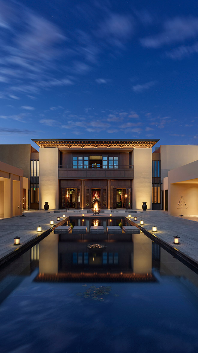 As the first of its kind in Dunhuang, this hotel sets a new standard. Inspired by its connection to lively Dunhuang city, it also celebrates modern creativity and local traditions. The Living Room fuses minimalist marble décor with cosy sofas, its walls home to art. Outside, the Water View Theatre puts on a range of shows all year round, while the courtyard and oasis view rooms make luxurious exhibits of desert and sky. In between delicious meals in the Silk & Spice restaurant, and cocktails at the world-class Mirage Bar, salute the sun with yoga, take up camp in the desert, or press ‘pause’ in the hotel’s Meditation Space.