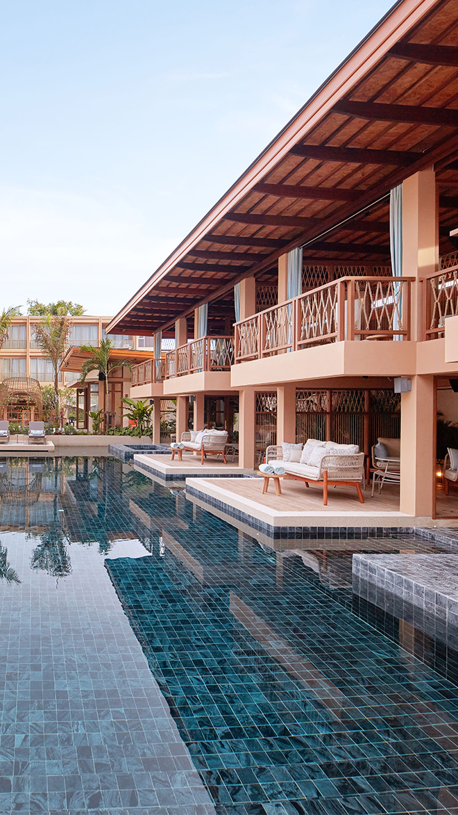 Sea views, private plunge pools and stunning standalone baths add layers of luxury while two-bedroom suites offer plenty of space for groups. Venturing out, eyes and feet are drawn inevitably towards the beach and stunning central pool. The Cabanas Koh Samui Beach Club offers a vibrant, day-to-night experience with curated music, guest DJs, live performances, and an exciting social scene. Revel in the turquoise waters, savour delicious bites from seven specialty food stations, and sip handcrafted cocktails at the beach bar. Wellness activities are also available beach-side, but for a more tranquil tone, make for the hotel’s spa.
