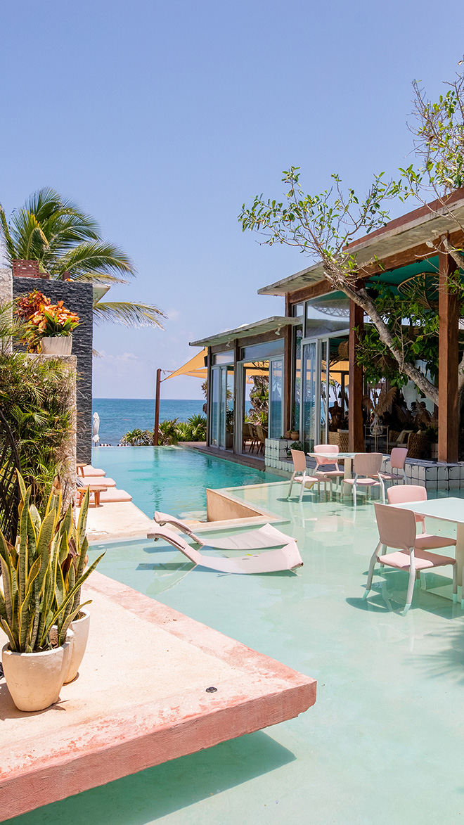 On a cliff above the Caribbean Sea, with Tulum’s lush jungle and ancient ruins in reach