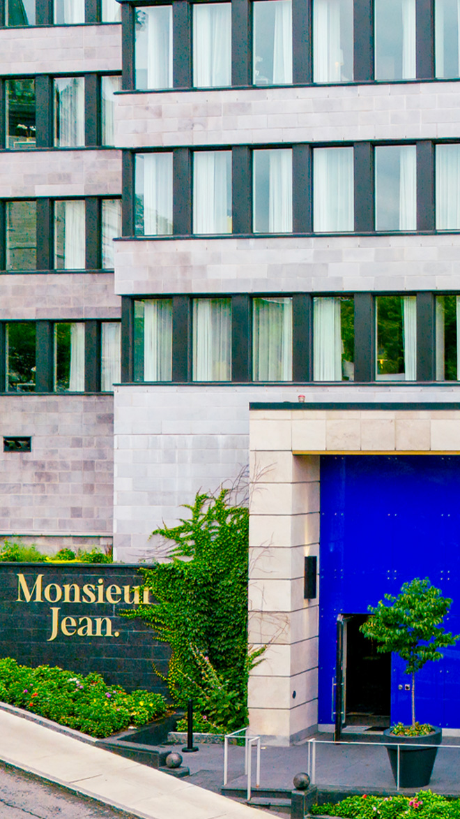 Signature monochrome stripes and flashes of cobalt blue enliven Monsieur Jean’s airy suites that are packed with little details to elevate your stay. Enjoy the welcome treat, warm your toes on heated floors and sink into your freestanding bathtub. Take in river or city views from your room, or pick a luxury suite with a terrace to soak up the sights and sounds of Québec’s vibrant streets in summer. Every suite comes with a kitchenette for whipping up snacks during your stay, or you can head to the hotel’s cocktail bar Le Bijou for a light bite.
