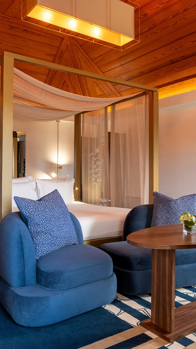 Wander through the peaceful garden with its magical reflecting water mirror before taking a dip in an outdoor swimming pool. There’s another heated pool inside the spa, which specialises in Mediterranean-inspired thermal therapies. Or keep up your fitness regime in the state-of-the-art gym. When evening falls, head to the BarTolomeu for a signature cocktail on the terrace before dining in the Po Tat restaurant. Here, authentic Pan-Asian flavours are reimagined with a sophisticated touch – accompanied by majestic views of the River Tagus and Belém Tower.