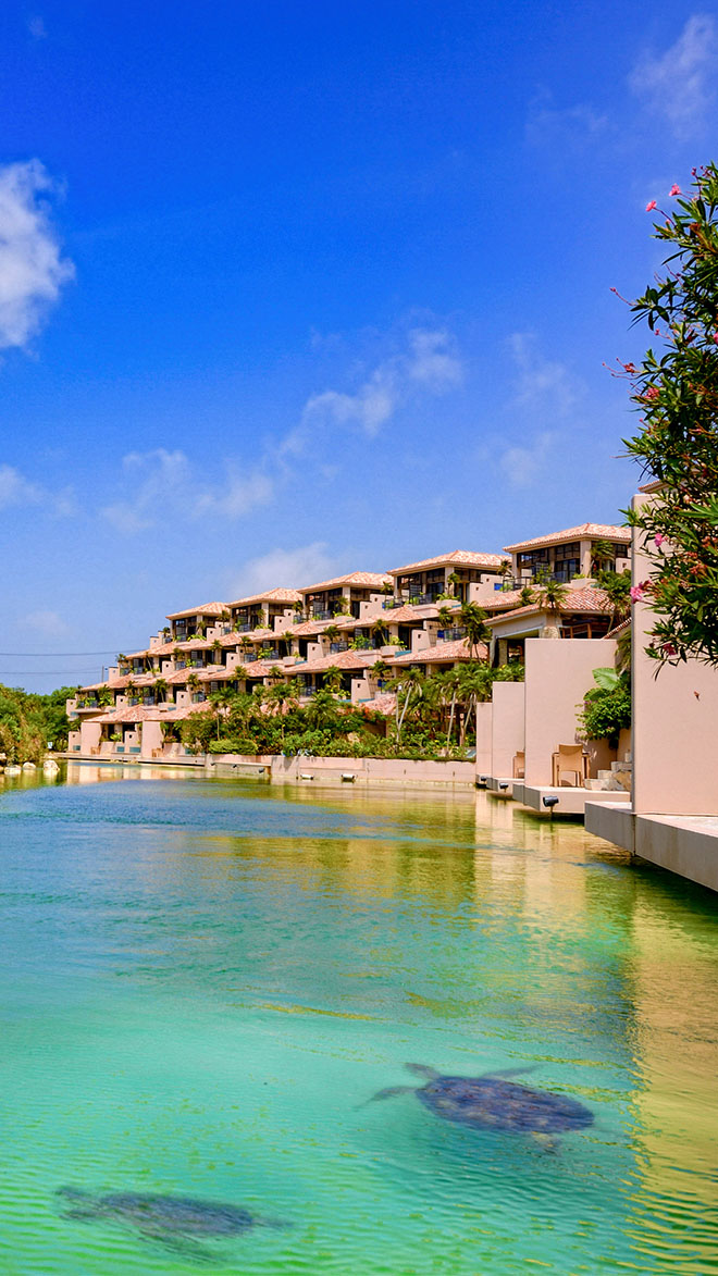 At Shigira Bayside Suite Allamanda tropical flowers and trees frame the balconies, terraces, pools, and cabanas dotted around the hotel. Suites are simply but elegantly furnished, and feature private pools, daybeds, whirlpools, terraces, and gazebos for a taste of tropical island luxury. See if you can spot sea turtles as you unwind on your terrace and look across the glistening ocean – famed for its bright blue colour – with cocktail in hand. Or spend time relaxing in the warm waters of the hotel’s onsen –breath-taking, amber coloured natural hot springs. The resort’s seven restaurants can satisfy any appetite, serving inventive Japanese cuisine, Italian classics, and relaxed ocean view brunches. While the Allamanda lounge is the perfect place to spend an evening stargazing in this designated ‘dark sky’ area.