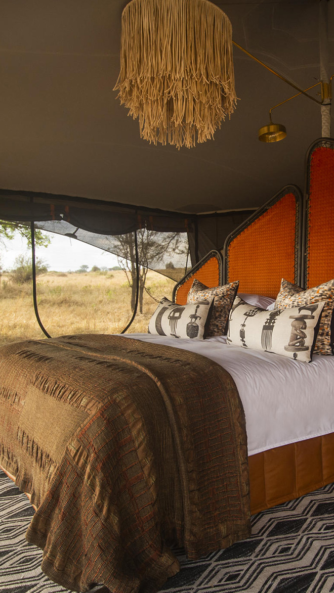 Bedouin-style tents overlook rolling plains. Rich fabrics, plentiful pillows and brass lanterns adorn spacious beds. Wrap-around views eliminate the boundary between visitor and nature. Each tent has its own ensuite with on-demand hot water – no roughing it here. And a quick stroll reveals a well-appointed canvas-covered lounge and dining area, so elegant in fact, it’s hard to believe the accommodation makes its own migration. But comfort is Siringit’s specialty – along with outstanding service and local knowledge. The camp’s team includes chefs, butlers and wildlife guides, all on hand to make your stay unforgettable. And it will be – the stunning Serengeti guarantees it.
