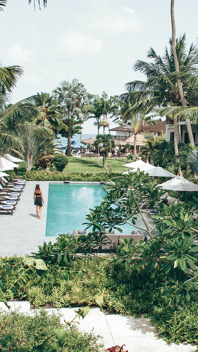 A stroll through the tropical gardens provides a real feel for this charming retreat. Wander through orchid and swaying coconut trees, past tranquil koi ponds down towards a beach of glistening white sand set against a deep blue sea and sky. Choose from a garden, pool or sea view room, a suite, a Tree Top Suite with its own pool, or a Beach House Suite.