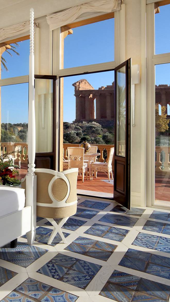 Rise early and take advantage of Villa Athena Resort's location by walking to the archaeological site of the temples before the crowds visit. If exploring by car, the resort offers free parking for guests, with an especially installed electric charging column - POLE STATION 3G 43kW that is complimentary for hotel and restaurant guests to use. You can also take a trip to the Villa Athena Farm, just a few kilometres from the hotel, where the hotel harvests traditional Sicilian produce. Later, sit in the garden with a cold glass of limoncello amid the lemon trees and view the temple on the hill. Following dinner in the restaurant, look at the temple yet again, illuminated in the night sky, from the balcony in your room.